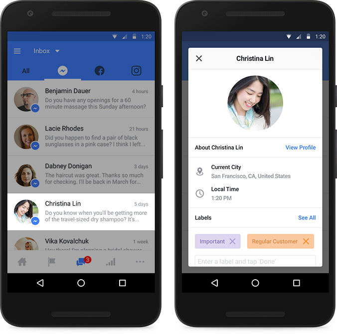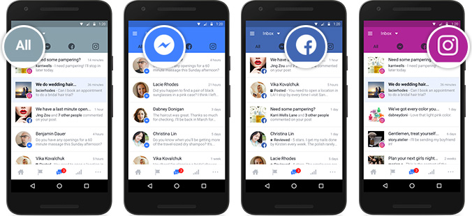 Bedrijven die zowel Facebook als Instagram gebruiken, zullen aangenaam verrast zijn. Op dit moment beheren bedrijven hun reacties en vragen in de Facebook, Messenger en Instagram app. Met de nieuwe toepassing worden al deze platformen gecombineerd tot één inbox en hoef je dus maar één plek te monitoren.