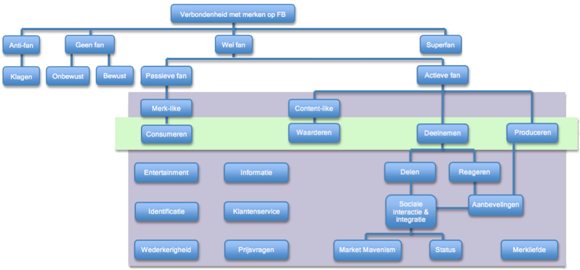 Fanmotieven: waarom worden en blijven consumenten fan van jouw merk? Klik op het schema voor een grote weergave.