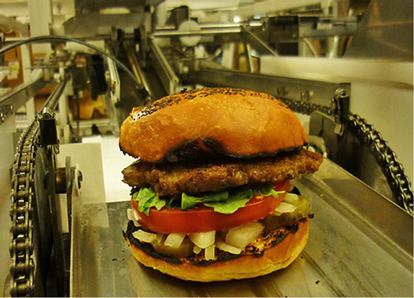 Eind 2010 maakte Momentum Machines bekend dat het de “Burgeon” ontwikkeld heeft: een apparaat dat 360 hamburgers per uur kan maken. En mocht er nog twijfel zijn omtrent het nut van dit apparaat, dan is volgende boodschap op de website overduidelijk: “Our alpha machine replaces all of the hamburger line cooks in a restaurant. It does everything employees can do except better.“
