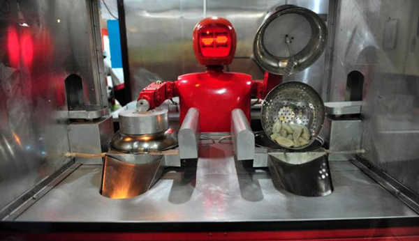 In Harbin, gelegen in de Chinese provincie Heilongjiang, staat Robot Restaurant. Twintig robots maken hier de dienst uit. Ze nemen bestellingen op, koken dumplings en noedels, serveren het eten en vermaken de gasten. Chief Engineer Liu Hasheng zegt dat de hele creatie 5 miljoen yuan kostte (ongeveer 580.000 euro), en de robots 200.000 tot 300.000 yuan (tussen de 23.000 en 35.000 euro). Na een oplaadtijd van twee uur zijn de robots in staat om continu vijf uur lang nonstop te werken.