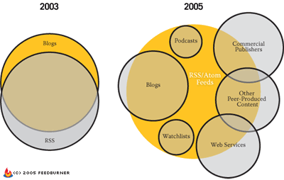 FeedBurner, een van de meest bekende leveranciers op het gebied van RSS-statistieken, is op haar weblog BurningDoor een interessante discussiereeks gestart over de status van RSS: How feeds will change the way content is distributed, valued and consumed (pdf).