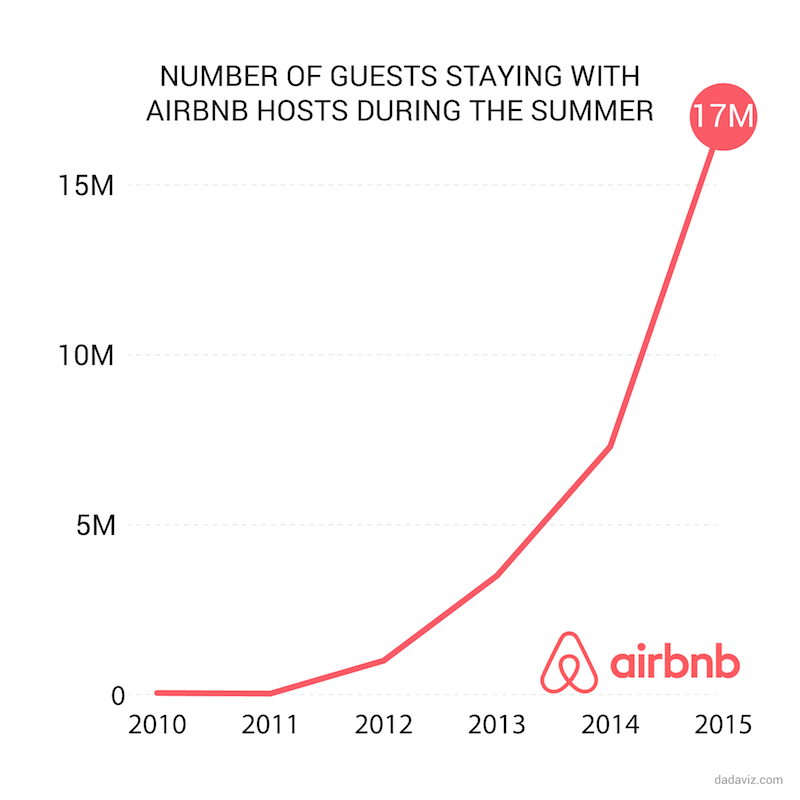 Doordat marktplaatsen alleen faciliteren, maar niet zelf goederen of diensten bezitten, kunnen zij ook exponentieel groeien. En dat deed bijvoorbeeld Airbnb de afgelopen jaren dan ook.