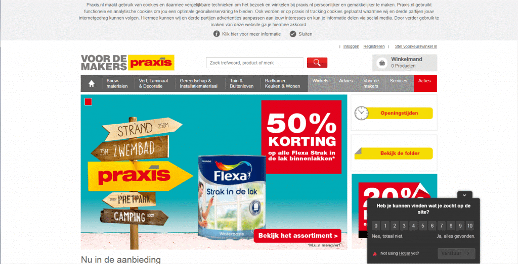 Onderstaand screenshot is een voorbeeld van contact zoeken op het verkeerde moment. Er wordt een pop-up getoond met de vraag “Heb je kunnen vinden wat je zocht?”, terwijl de bezoeker net op de website is. Er was nog geen tijd om te zoeken, laat staan te scrollen en de website te bekijken.