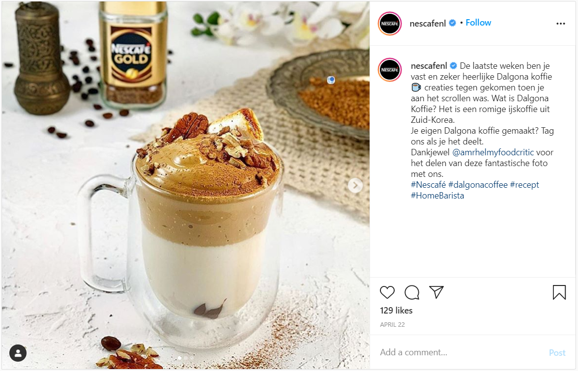 Afbeelding 2. Nescafé speelt in op de Dalgona-koffietrend