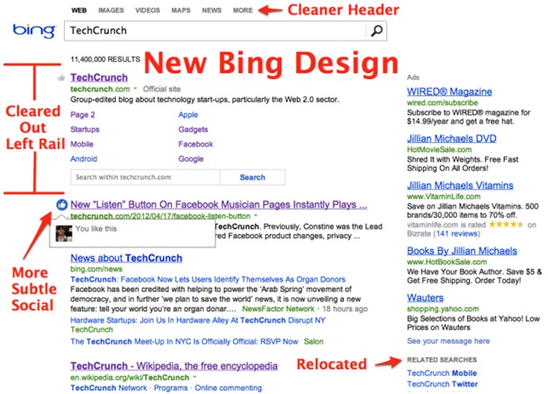 Naast DuckDuckGo is ook Bing bezig met een redesign van de resultaten. Het nieuwe design biedt geen plaats meer voor de linker sidebar en verwijderd links in de header van de pagina.