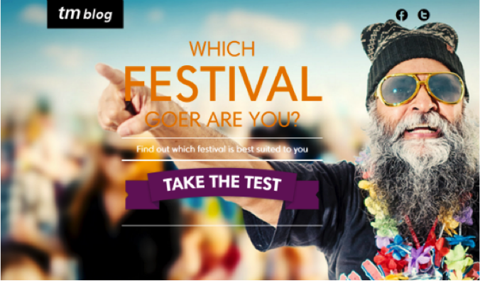 Zo zette Ticketmaster een quiz ‘Which festival goer are you?’ in. De quiz vroeg gebruikers op een grappige manier aan te geven wat hun voorkeuren en gebruiken zijn als het om festivals gaat. Op basis van je antwoorden werd het best passende festival aan je voorgesteld, met nuttige informatie over het festival zelf. En uiteraard kon je direct tickets boeken.