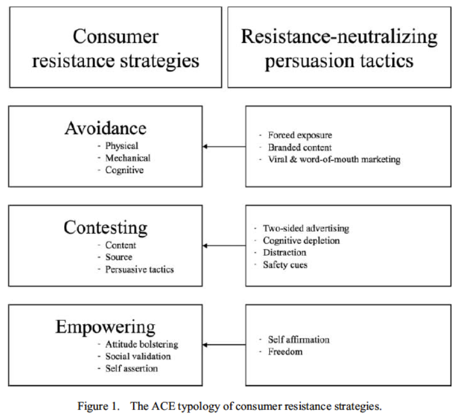 Fransen, M. L., Verlegh, P. W., Kirmani, A., & Smit, E. G. (2015). ‘A typology of consumer strategies for resisting advertising, and a review of mechanisms for countering them.’ International Journal of Advertising, 34(1), 6-16.