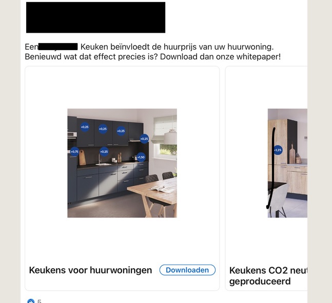 Als je mijn LinkedIn profiel erop naslaat, dan kun je wel enigszins bedenken wat er is gebeurd in de bovenstaande voorbeelden. Natuurlijk heb ik in de bouwwereld gewerkt, maar je kunt ook zien dat ik dat al sinds 2017 niet meer doe. Daar komt bij, met een functie in communicatie heb ik geen invloed op bouwconcepten, het ontwerp van het gebouw, de inkoop of het materieel. Dan is deze targetting wel erg slordig, toch? En vooral ook zonde van je geld. Nieuwsgierig als ik ben, klik ik af en toe toch. En als je op CPM hebt ingekocht, dan is je geld sowieso verbrand.
