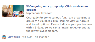 Een handige manier om met vrienden gemakkelijk een reis te boeken zonder hassle, dat is de Trip Planner zeker. En het geeft KLM een mogelijke voorkeurspositie bij het plannen van een groepsreis én een directe link naar de sociale netwerken van de reizigers.