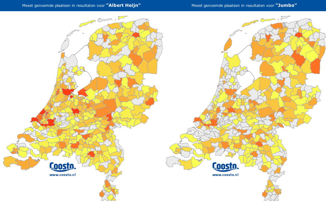 Social media-berichten analyseren op basis van geografie is leuk, dat merken we deze week bij Coosto nu we onze nieuwe bètafeature GeoMark deels hebben opengesteld voor het grote publiek. Mensen doorzoeken over welke plaatsen zij op sociale media hebben gesproken in de afgelopen periode. Ook bekijken bezoekers veelvuldig welke plaatsen worden genoemd in combinatie met ‘inbraak’, ‘rellen’ en ‘zonsondergang’. In deze blog probeer ik, aan de hand van een praktijkvoorbeeld voor het merk Albert Heijn, te laten zien wat de waarde van geo-analyse voor een merk kan zijn. En dat kan ook best leuk zijn!