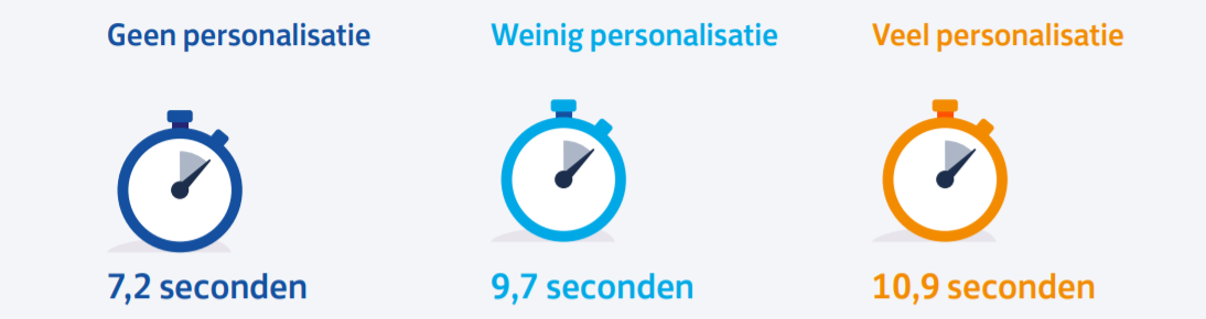 - 7.2 seconden bij geen personalisatie