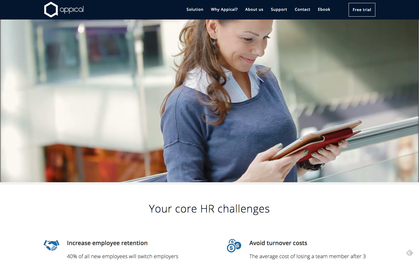 Negen van de tien werknemers beslissen binnen een halfjaar bij een werkgever te willen blijven of niet. Juist daarom is het van belang die eerste periode zo soepel mogelijk te laten verlopen. Hoe beter een werknemer is geïnformeerd en geïntegreerd, hoe groter de kans dat een besluit positief uitvalt. Appical helpt daarbij. De app informeert, structureert en stimuleert bepaald gedrag. En dat is geen overbodige luxe, aldus CEO Gerrit Brouwer. In sommige bedrijfstakken, zoals bijvoorbeeld retail, zie je een verloop van 50 tot 60 procent.