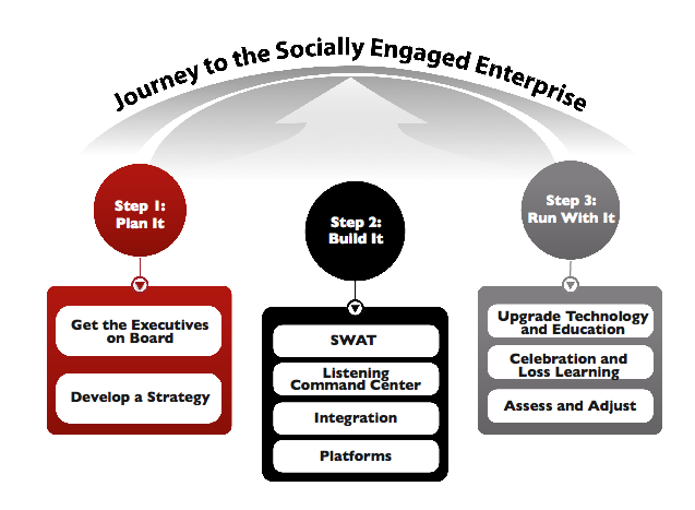 Ze hebben ook een stappenplan gemaakt om social engaged te worden als bedrijf: