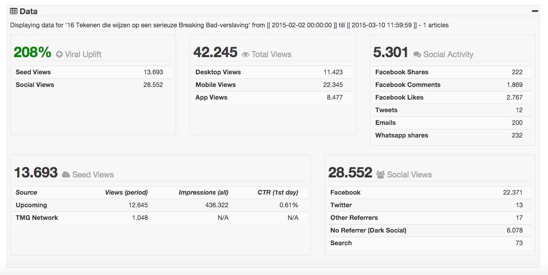 Bij Upcoming volgen ze zo mogelijk nog nauwlettender wat een stuk content doet. Droste: “We hebben in onze redactieruimte 3 schermen waarop we live volgen wat er met een lijstje gebeurt zodra we het online zetten. Die gegevens gebruiken we in het eerste halfuur om met een A/B-test te achterhalen welke kop het beste presteert. We bekijken hoe vaak een lijstje bekeken wordt, maar minstens zo belangrijk is het aantal keren dat zo’n lijstje gedeeld wordt en het aantal reacties dat er op komen. En ook wij delen die cijfers met opdrachtgevers, zodat ze geen reden hebben om aan onze werkwijze te twijfelen.”