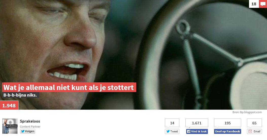 Ook op lijstjeswebsite Upcoming is ruimte voor branded content. Ze beloven gesponsorde verhalen die wél leuk zijn en die vaak nog viraal gaan ook. Maar volgens manager Koen Droste levert een samenwerking met de redactie van Upcoming veel meer op. “Met onze lijstjes kunnen we erg goed discussies en gesprekken op gang brengen. Voor het programma Sprakeloos van de KRO maakten we een lijstje met de titel ‘Wat je allemaal niet kunt als je stottert‘. Op het eerste oog lijkt het alsof we stotteraars belachelijk maken, maar zo’n lijstje blijkt uiterst effectief om problematiek onder de aandacht te brengen. Het lijstje werd niet alleen bijna 2.000 keer gedeeld via sociale media, op Facebook was het lijstje ook nog eens goed voor ruim 1.800 reacties.”