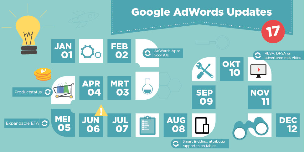 Het jaar 2016 kende veel nieuwe ontwikkelingen. De aanpassingen naar de nieuwe ETA-standaard hebben waarschijnlijk veel tijd gekost. Er zijn inmiddels zoveel knopjes in AdWords dat de cockpit alleen door de beste piloten bediend kan worden. Prioriteer daarom goed je nieuwe ideeën en behoud het overzicht.