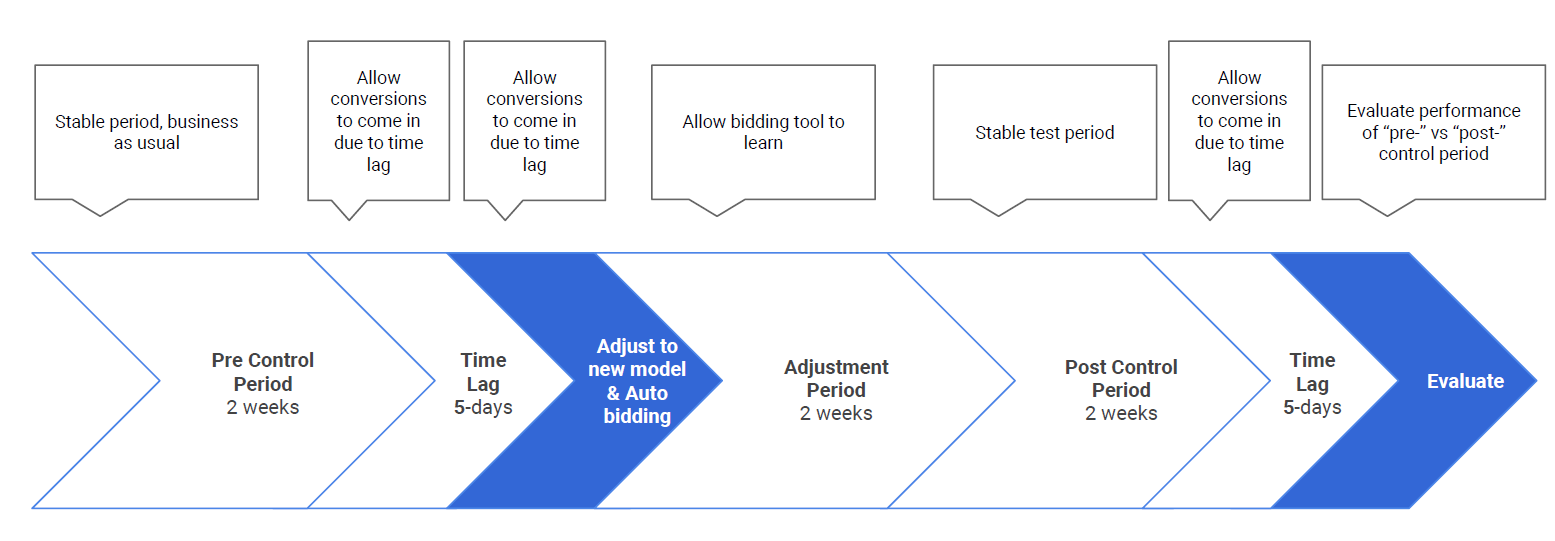 Biedstrategieën zullen zich wel moeten aanpassen aan het nieuwe model. De verwachting is dat je verbeteringen zal zien in de upperfunnel (generieke zoekwoorden) en een vermindering in de lowerfunnel (merk zoekwoorden). Houd er rekening mee dat het model gaat optimaliseren op basis van je huidige zoekwoorden. In het verleden heb je misschien zoekwoorden uitgezet waarvan je nu wel een bijdrage kan zien. Het is daarom verstandig te testen met meer upperfunnelzoekwoorden.