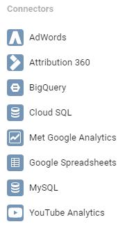 Google Data Studio biedt nog veel meer koppelingen. Zo kun je naast data uit Analytics en AdWords ook data uit Google Sheets, Google BigQuery, Attribution 360 en YouTube. Recentelijk zijn deze features nog uitgebreid met Google Cloud SQL en MySQL connector.