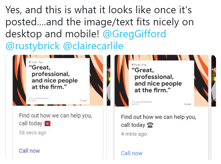 Een andere gave feature is dat inmiddels in enkele landen (nog niet hier gezien) de mogelijkheid bestaat om uitgelichte reviews te laten zien. Google doet daarvoor zelf suggesties per vermelding via e-mail of wanneer je inlogt in GMB. De suggesties zijn gebaseerd op 4- of 5-sterrenreviews. Je kunt van te voren nog aanpassingen doen. Heel interessant als je bijvoorbeeld te maken hebt gehad met slechte publiciteit of als je gewoon wilt laten zien wat nou jouw bedrijf typeert volgens je klanten. Het is een vorm van een Google Post, dus daar verschijnt ook een eventuele knop naar wens onder.