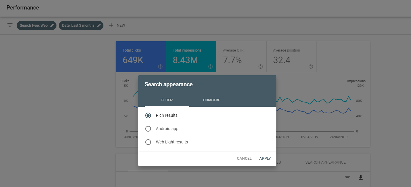 “Bij Search Appearance kun je nu ook filteren op Android App”