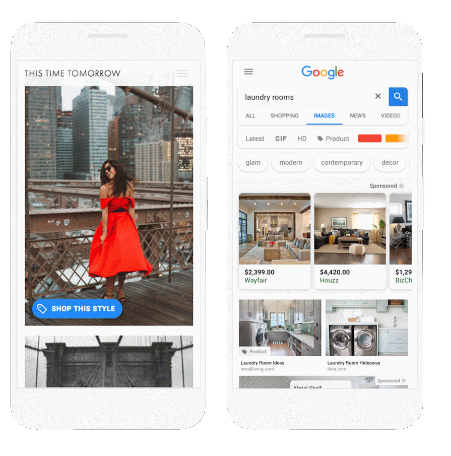 Nog een extra toevoeging, misschien heb je het al gezien: Shoppable Image Ads. Dit gaat wat verder dan alleen gesponsorde afbeeldingen waarop je kunt klikken binnen Image Search (ook nieuw daar). Publishers (denk aan bloggers) kunnen nu afbeeldingen met producten er in ‘shoppable’ maken. Weet je nog dat Senanga dat principe ooit introduceerde? Google heeft het nu dus ook in het snotje. Hoe het precies gaat werken kan ik nog niet terugvinden, maar het zal waarschijnlijk als format beschikbaar zijn binnen Google Shopping.