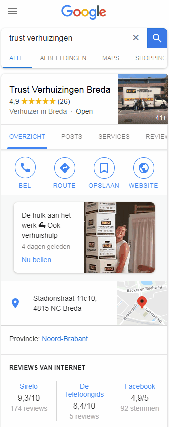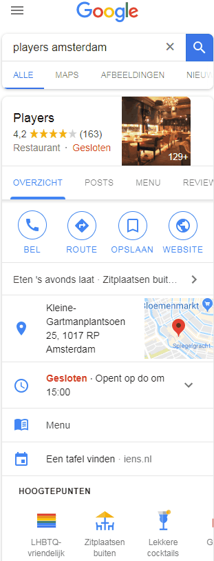 Door het toevoegen van nieuwe functies als Menu en Services, worden Google Mijn Bedrijf-vermeldingen steeds meer een ‘website’ binnen Google. Bezoekers die jouw bedrijf vinden via Google Search of Google Maps, hoeven in steeds minder gevallen door te klikken naar je website om bepaalde informatie te verkrijgen: je NAW-gegevens, openingstijden, recensies (en nu ook menu en diensten) vinden ze immers al direct in Google. Je bedrijfsvermelding wordt daardoor steeds belangrijker en het loont om hier geregeld aandacht aan te besteden en in te spelen op nieuwe ontwikkelingen binnen Google Mijn Bedrijf.