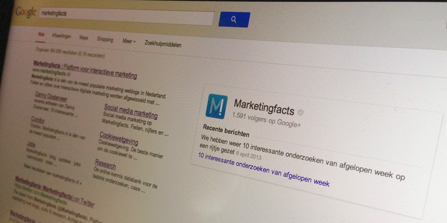 Vooral voor grote merken gaat de toegevoegde waarde van Google+ in deze knowledge graph niet op. Immers zijn zij, bijvoorbeeld door de aanwezigheid van een Wikipedia-pagina, vaak al opgenomen in die knowledge graph. Voor de bedrijven die niet in de categorie GE en Philips vallen, zoals voor Marketingfacts, gaat de toegevoegde waarde van een Google+-account wel op.