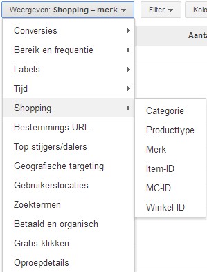 - Via dimensies kun je eenvoudig een rapportage opstellen van de shopping-campagne om te sturen op een specifieke groep.