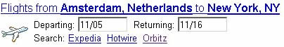 Zoek je in Google bijvoorbeeld naar Amsterdam New York (deze link schijnt soms niet te werken afhankelijk van je instellingen) dan zul je boven de organische resultaten het bovenstaande resultaat aantreffen.