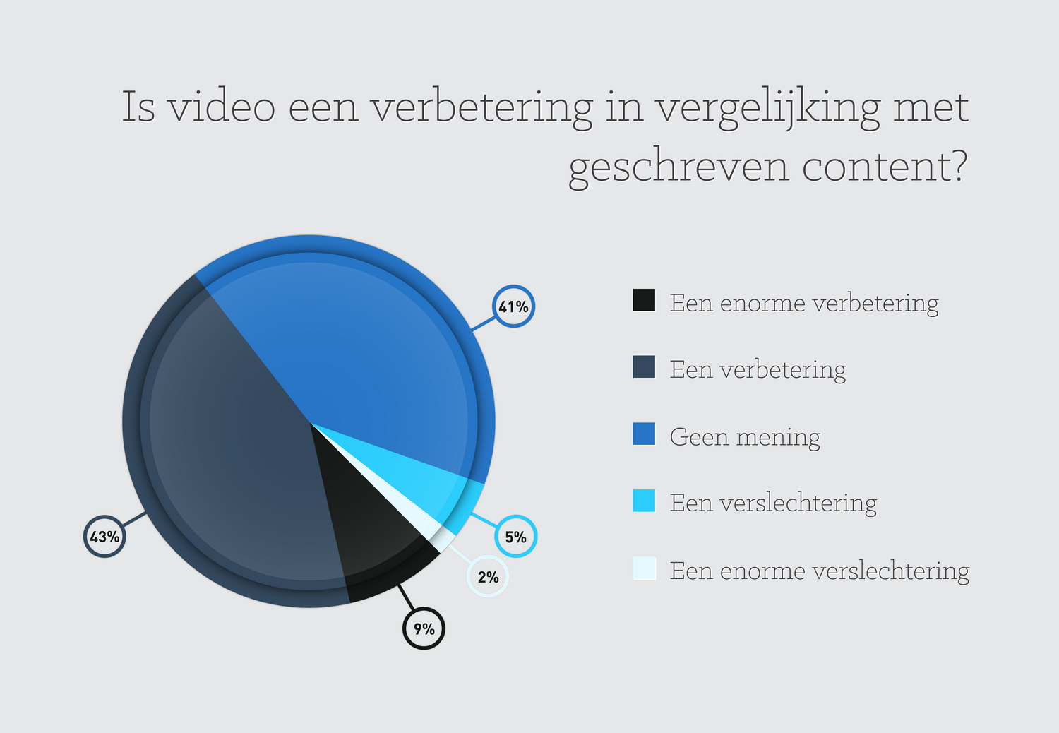 We kunnen dan ook concluderen dat online video met name gebruikt moet worden als versterkende factor van geschreven content. Zo kun je jouw content op een pagina bijvoorbeeld in zowel videovorm als geschreven vorm tonen, waarbij de video een samenvatting is van de geschreven tekst op de pagina (die dan net even uitgebreider is). Gooi je content dus zeker niet weg, maar combineer je videostrategie met je geschreven contentstrategie!