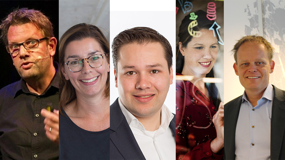 Beeld v.l.n.r: Berry Punt (Nielsen), Marit Klooster (Ruigrok NetPanel), Boj Nefkens (Markteffect), Hilde Doting (Validators), Lucas Hulsebos (DVJ Insights).