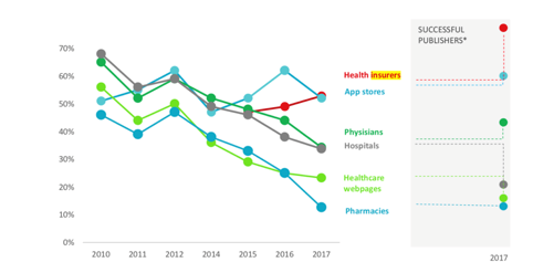 Hoe vinden medische apps hun weg naar de gebruikers in de toekomst? Naar verwachting voornamelijk via zorgverzekeraars. Verzekeraars zullen de komende jaren als distributiekanaal van mHealth-apps blijven groeien. Als distributiekanaal voor mHealth-producten hebben ziekenhuizen, artsen en farmaceutische organisaties de afgelopen jaren als distributiekanaal teleurgesteld.