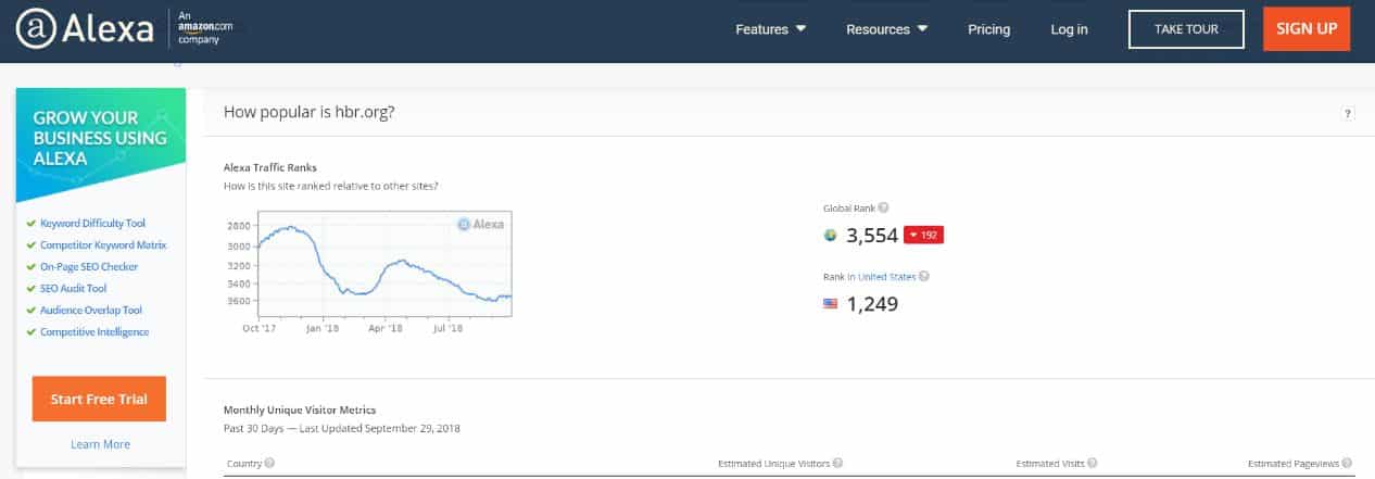 Het gaat goed met je, maar vergeet nooit om de concurrentie in het oog te houden. Hoe gaat het bijvoorbeeld met hun website? Natuurlijk heb je Alexa gebruikt om hun verkeer te rangschikken, maar wist je dat deze tool veel meer kan? Alexa kan ook concurrenten identificeren waarvan je niet bewust was. Het zal je vertellen wat zij beter doen en je het benodigde advies geven om dit op te lossen. Deze tool heeft een gratis proefperiode van zeven dagen.