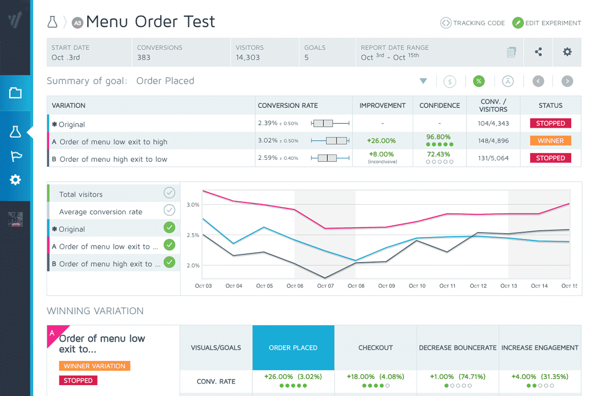 De eenvoudigste manier om de omzet te verhogen, is door meer producten aan je trouwe klanten te verkopen. Een goed hulpmiddel om dit te bereiken, is de A/B-testtool van Convert. Dit is een betaalbare, gebruiksvriendelijke optimalisatietool. Vooral nuttig zijn de personaliseringsfuncties van Convert waarmee je meer overtuigingskracht kunt bieden door specifieke pagina’s te koppelen aan specifieke mensen met een rijke geo-targeting.