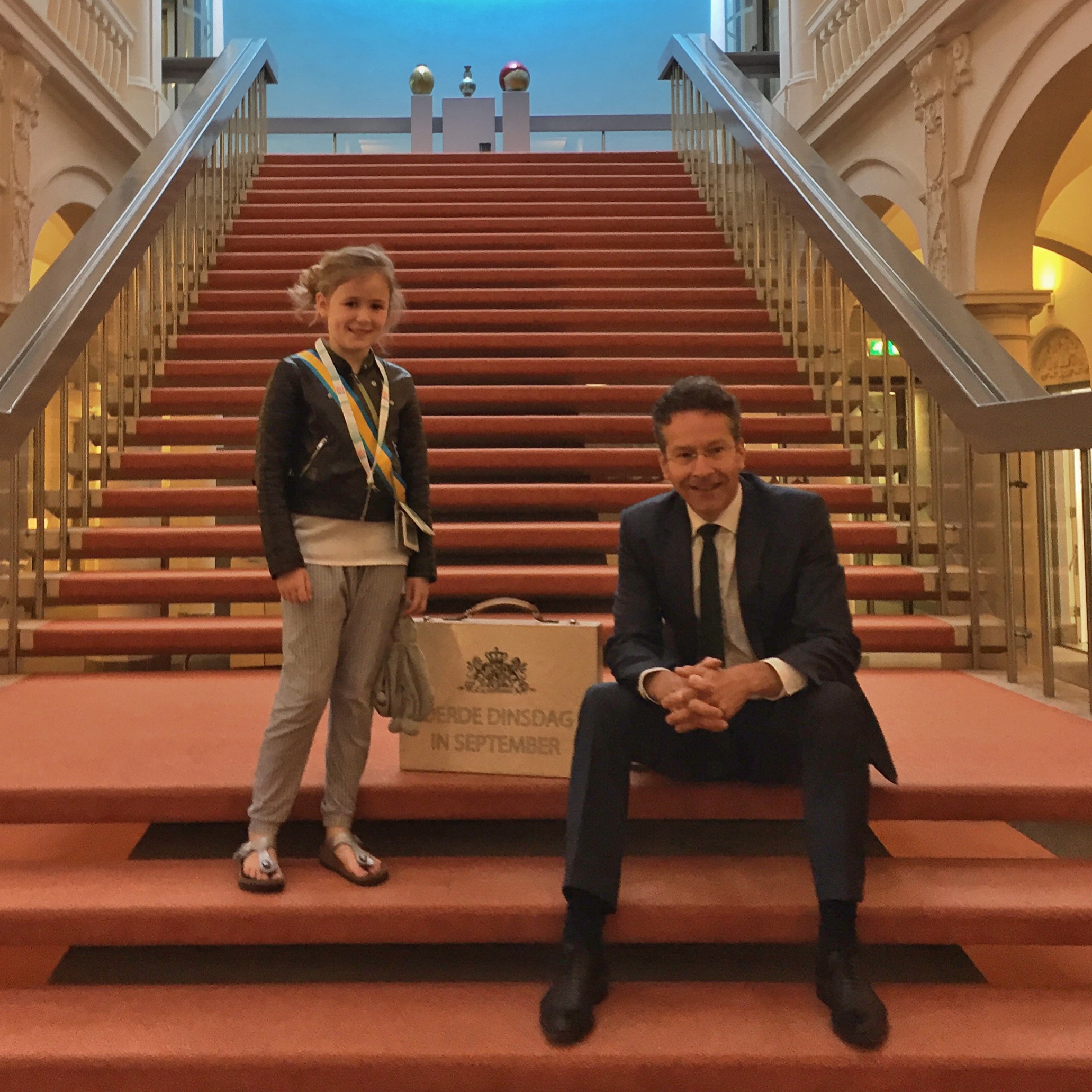 De gids lijkt nog veel meer onder de indruk dan mijn dochter zelf. Maar zodra ze uitlegt hóe uniek de situatie eigenlijk is, begint m’n dochter te glimmen. De rest van de dag mompelt ze regelmatig en staccato: “Jeróen. Díjsselbloem… Jeróen. Díjsselbloem… Jeróen. Díjsselbloem…”