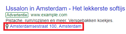 Veel bedrijven hebben naast hun website ook nog fysieke locaties waar zij graag bezoekers ontvangen. De locatie-extensie levert hier een positieve bijdrage aan: het voegt het adres, de route of de afstand naar het bedrijf toe aan de advertentie.