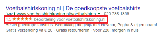 Moet je nou bang zijn als adverteerder dat een negatieve beoordeling zichtbaar is? Nee. De extensie wordt alleen weergegeven bij een beoordeling van 3,5 sterren of hoger.