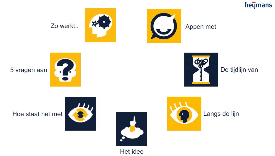 De formats bieden bovendien veel ruimte om personen te laten zien, zij geven een gezicht aan het bedrijf. Bovendien zorgt het bedrijf voor online snacks die ze via social media kunnen delen. Zo gebruikt Heijmans vaak infographics, die het geweldig doen op social en veel bezoek trekken naar het achterliggende verhaal.