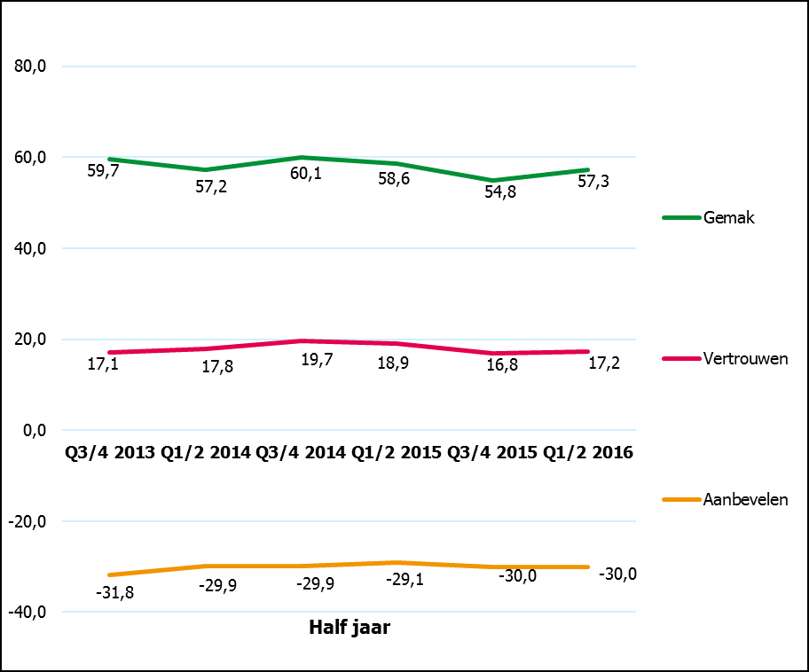 Op basis van het algehele plaatje concluderen wij dat er per saldo geen vooruitgang wordt geboekt. De klantwaardering is niet toegenomen als het gaat om vertrouwen, gemak en aanbevelen. En dat terwijl wij het gevoel hebben dat de aandacht voor customer experience alleen maar toeneemt.