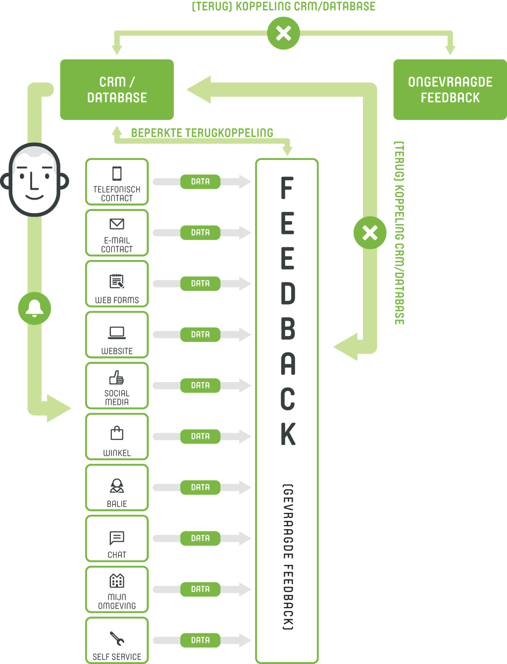 Ons devies luidt dan ook: leg en houd contact met je klanten en bevraag ze op wensen en verwachtingen. Dat kan op allerlei manieren, maar zet customer feedback als thema op de agenda. Zie alle relevante klantsignalen (gevraagd maar ook ongevraagd) als waardevolle input en zorg er voor dat ze niet verstopt blijven in Excel-sheets van de customer experience manager, de logfiles van je contactcenter of de inbox van je social listening tool.