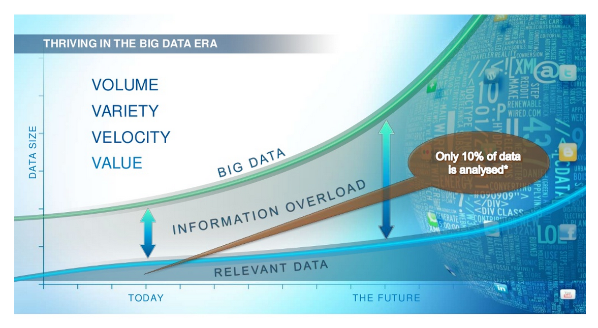 Uit een van de onderzoeken van McKinsey is gebleken dat slechts 0,5 procent van de totale data geanalyseerd wordt. Uit een ander onderzoek is gebleken dat tot 10 procent van de verzamelde en geordende data van Europese bedrijven wordt geanalyseerd, oftewel de andere 90 procent van de data heeft dus geen waarde. Wat heeft het dan voor zin om deze enorme hoeveelheid data te verzamelen als je deze toch niet analyseert? Want dan blijft het data en wordt het nooit informatie.
