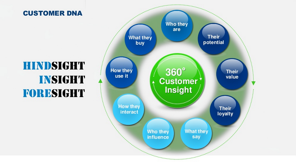 Het bepalen van het DNA van de klant op basis van een 360-gradenview