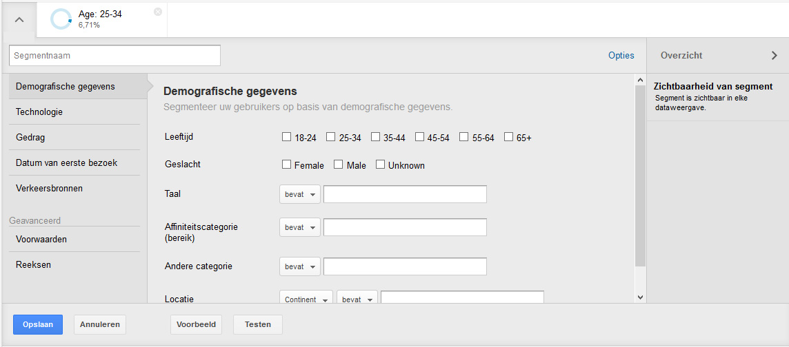 Geavanceerde segmenten – klik op afbeelding voor grotere weergave