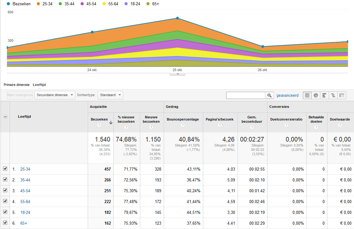 Nu het in Analytics mogelijk is om in korte tijd rapportages te maken op basis van demografische data, weet je veel beter wie je bereikt met je website – of juist niet – en hoe bezoekers binnen een bepaald segment zich gedragen. Dit maakt het mogelijk om je specifieker te richten op een bepaalde doelgroep. Zo kun je bijvoorbeeld zichtbaar maken hoe groot het aandeel vrouwen tussen de 18 en 24 uit de regio Amsterdam is op je website, hoe zij zich gedragen en welke bijdrage zij leveren aan de conversie.