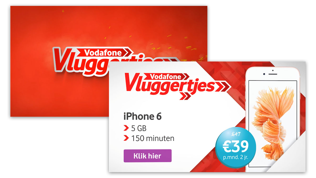 Voorbeeld van dynamische video: Vodafone Vluggertjes, waarin de propositie van de video werd bepaald op basis van sitebezoek.