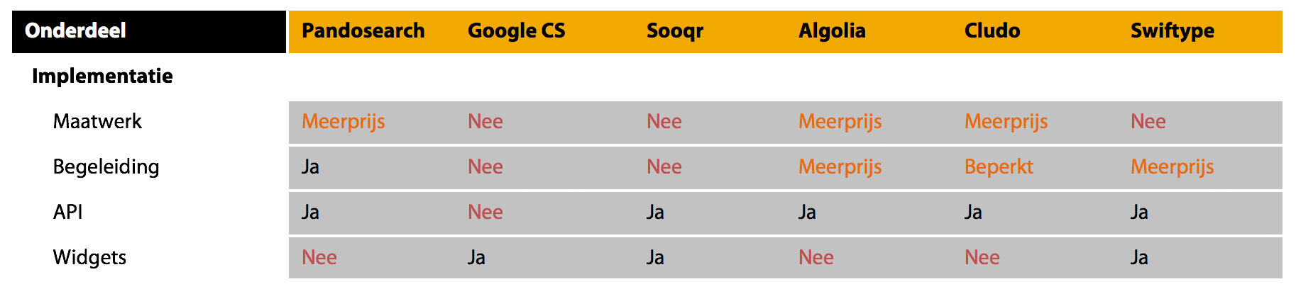 Misschien handig om die hele vergelijking te laten herzien door een derde partij want dit slaat nergens op. Zelf een aantal maal Algolia geïmplementeerd en veel zaken die in de tabellen staan kloppen niet.