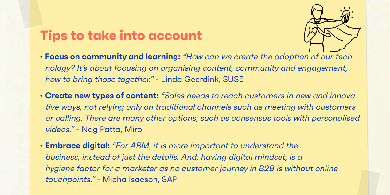 “Natuurlijk werken we samen met Sales. Wij helpen ze met social selling en ondersteun ze met meerdere contactpunten, zoals content en evenementen. Daarvoor kijken we naar de gehele klantreis om een optimale te creëren ervaring voor onze klanten.”