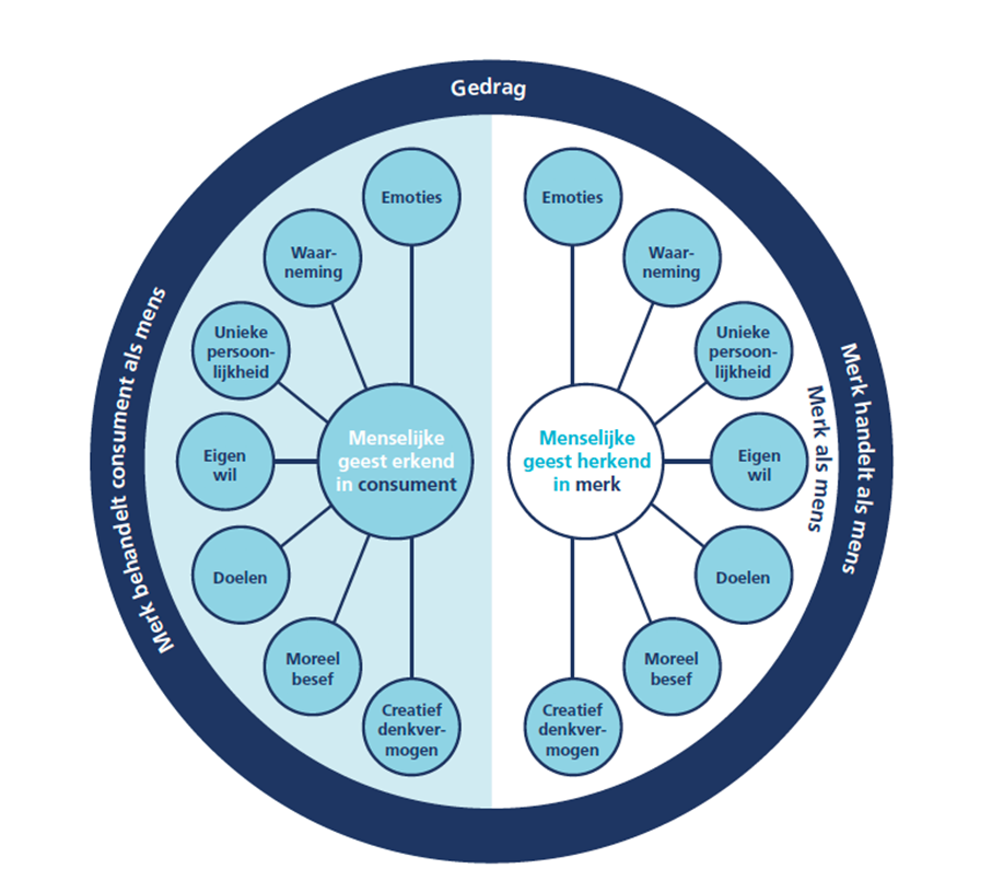 Bij een holistische aanpak draait het niet alleen om de menselijkheid van merken zelf, maar ook om de menselijkheid van de consument. Om menselijk gevonden te worden, moeten merken ook resoneren met dat wat consumenten het meest menselijk maakt: hun menselijke geest. Merken scoren hoger op ervaren menselijkheid als zij de consument bejegenen als een volwaardig mens met emoties, percepties, persoonlijkheid, wensen, doelen, moreel besef en creatieve denkkracht. Van menselijke merken wordt verwacht dat ze handelen als mens, maar ook de consument behandelen als mens.