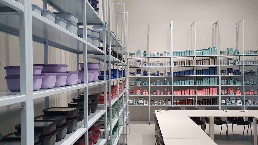 Eigenlijk hoopten we ook nog op een rondleiding door zo’n wondere wereld vol spuitgietmachines waar dan brandweerrode kopjes en schoteltjes van het plastic kampeerservies uit zouden hobbelen, maar Lochem blijkt niet de grote productie plant. Er wordt vooral ingepakt en geassembleerd daar en de kopjes en schoteltjes komen uit fabrieken elders aan de oostkant van het land. Er was wel een nogal adembenemende showroom met álles Mepal.