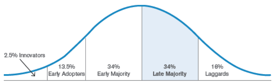 Cijfers van Telecompaper laten zien dat 81 procent van de Nederlanders van 18 tot 80 jaar in het bezit is van een smartphone. Met deze cijfers heeft de adoptiecurve nu het segment van de ‘late majority’ bereikt. De grootste groei komt van senioren. Ruim de helft (54 procent) van de vijfenzestigplussers bezit een smartphone. Een jaar terug was dat nog 40 procent. Onder jongeren is de groei beperkt, onder hen is de penetratie reeds 95 procent.